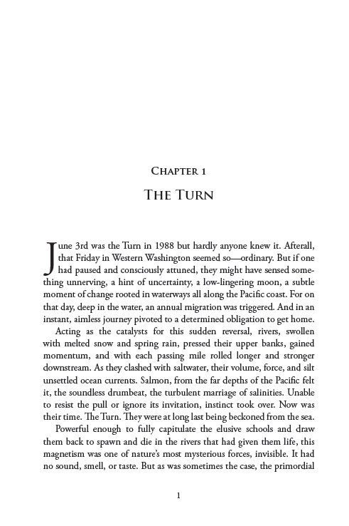 June 3rd was the Turn in 1988 but hardly anyone knew it. After all, that Friday in Western Washington seemed so—ordinary. But if one had paused and consciously attuned, they might have sensed something unnerving, a hint of uncertainty, a low-lingering moon, a subtle moment of change rooted in waterways all along the Pacific coast. For on that day, deep in the water, an annual migration was triggered. And in an instant, aimless journey pivoted to a determined obligation to get home…